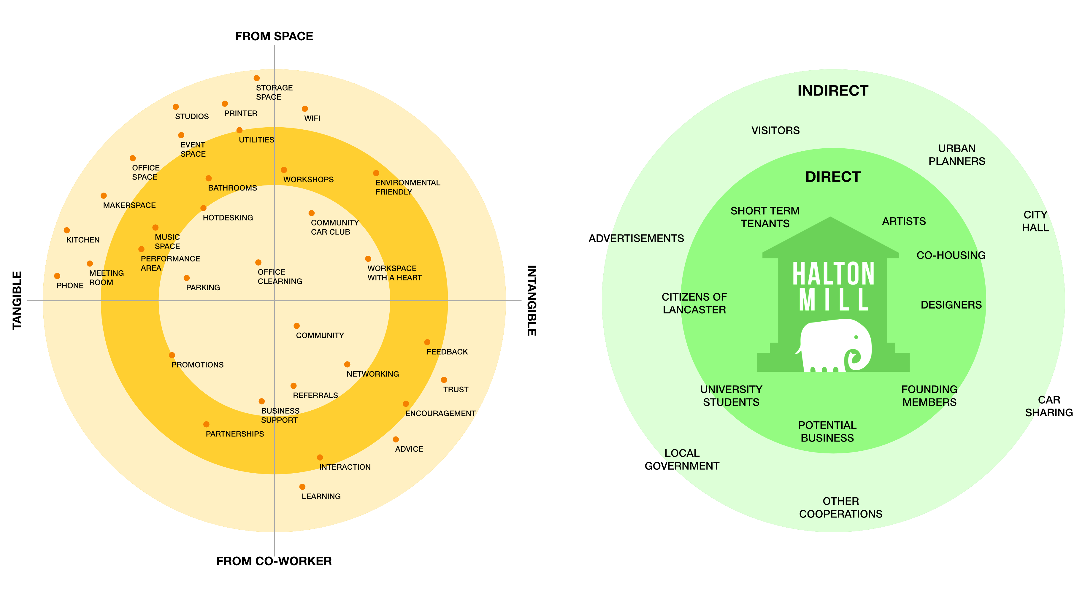 Halton Mill approached Lancaster University for graduate design managers willing to improve their business model and revenue through structured service design methods. As part of the team designing for social entrepreneurship within the defined co-working space of Halton Mill, this project aimed to be the basis for inspiration into the enhancement/improvement of the co-working environment present at the time at Halton Mill. The month long project involved a series of stages of exploration and analysis to understand client and community needs and offer varied term solutions for co-working in the Lancashire countryside.Challenges